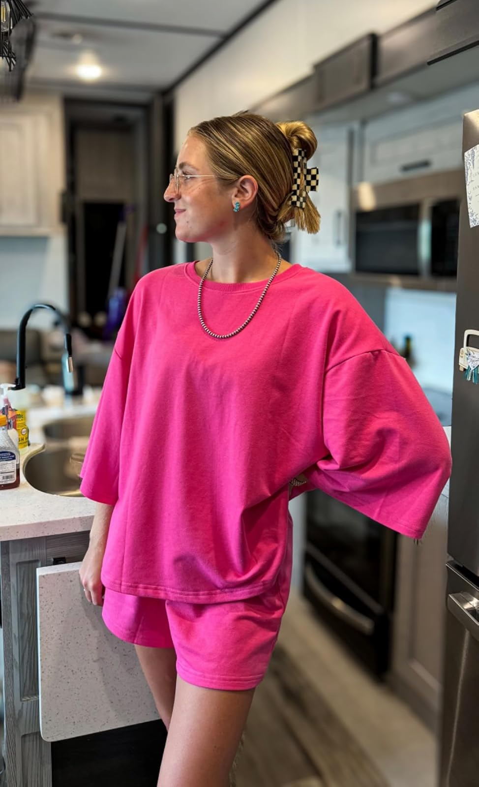 Introducing our All Weekend Lounge Set: the ultimate combination of comfort and style for your sunny days ahead! With an oversized t-shirt and short leggings, this set is designed to keep you cool and chic all summer long.